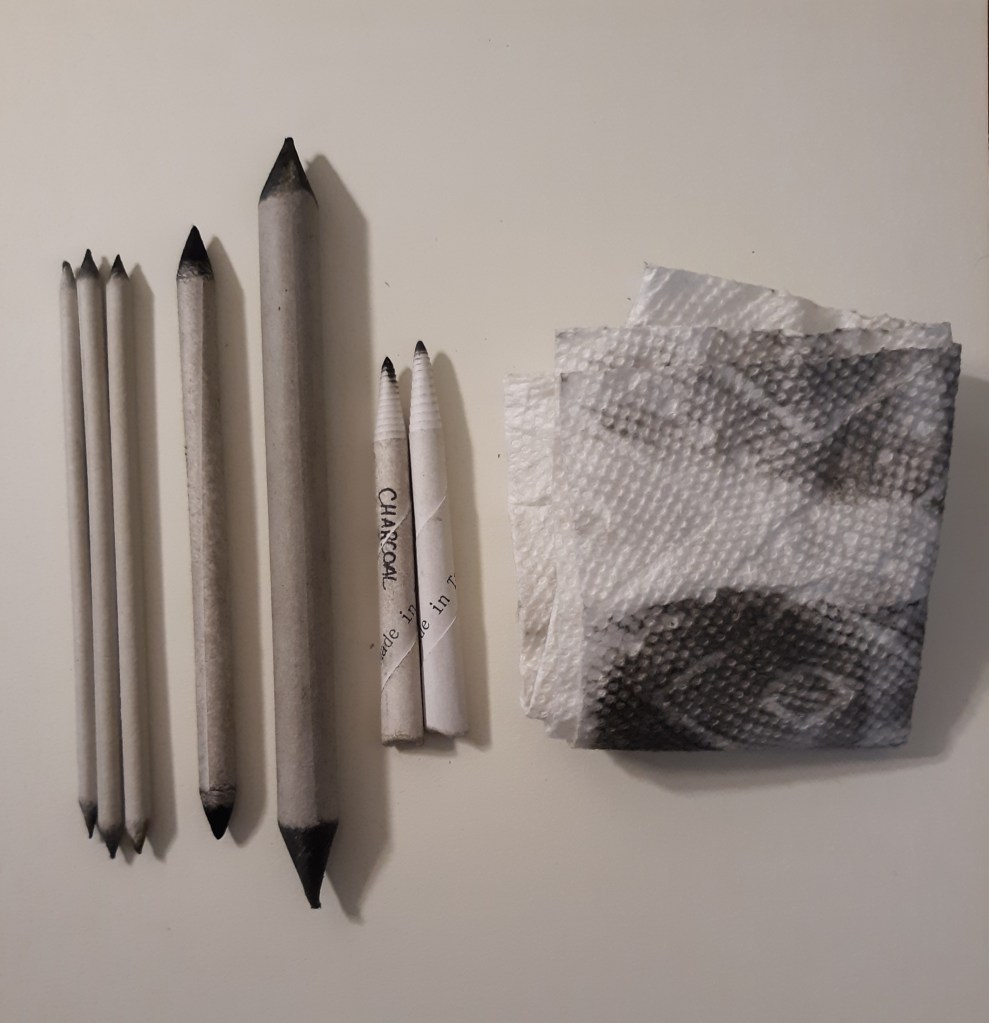 Then we have the charcoal pencils… which I also love. And the white colored pencil, which I don’t actually use a lot with the graphite and charcoal, but I thought it would be fun to talk about that technique.