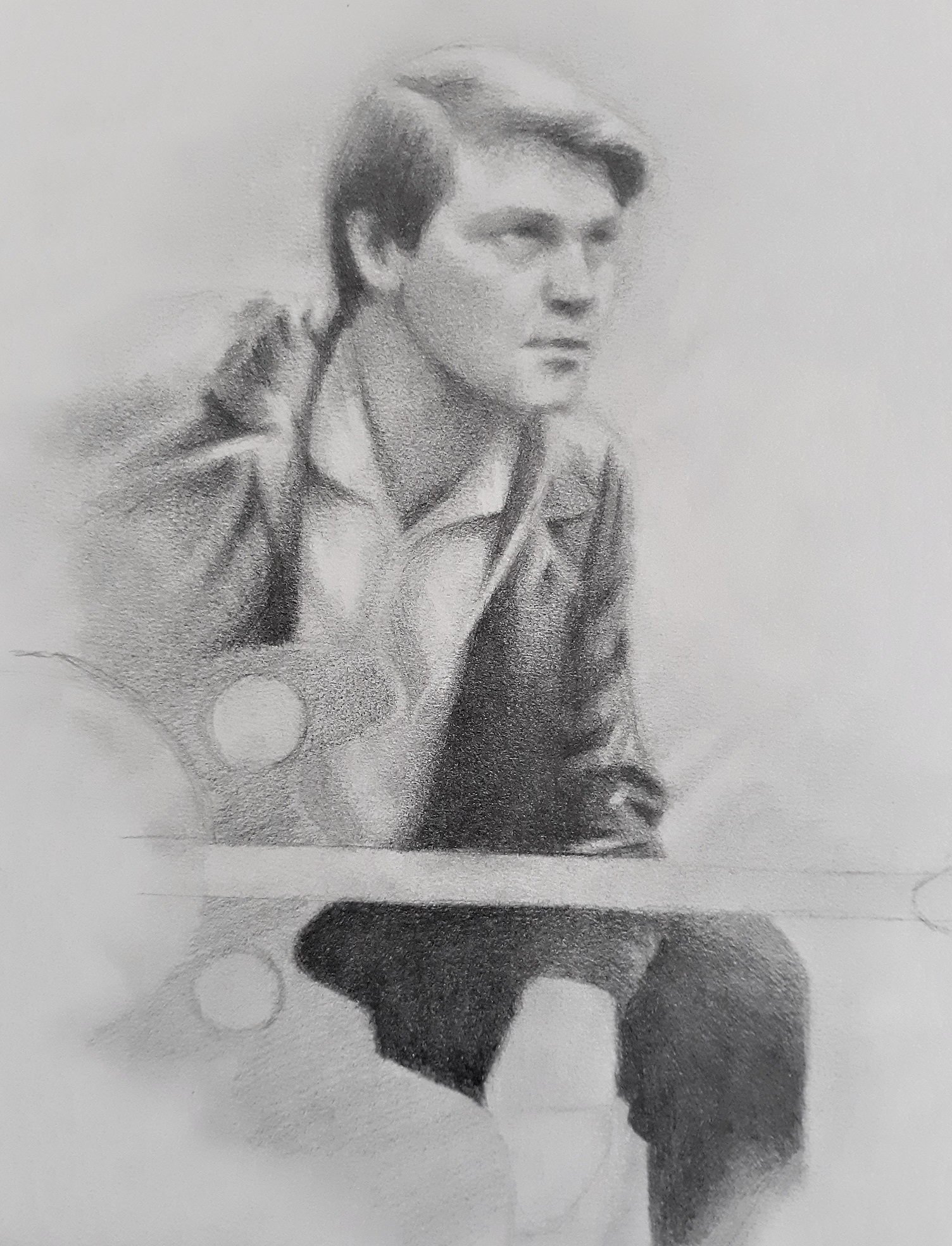 Well, fast forward a few more months, I was still having fun with edges, and I decided to sketch the drummer from another one of my favorite bands at that time, TOTO. And I’m not sure why I chose to use the blurriest reference photo on earth, but that’s what happened.