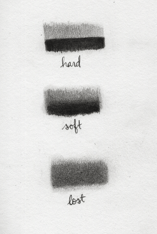 When it comes to shading with graphite or charcoal, we’re basically dealing with two fundamental subjects: value and edges. Value being how dark or light a certain object is (we talked about double checking your values/tones in my last post), and edges being the transition between values.