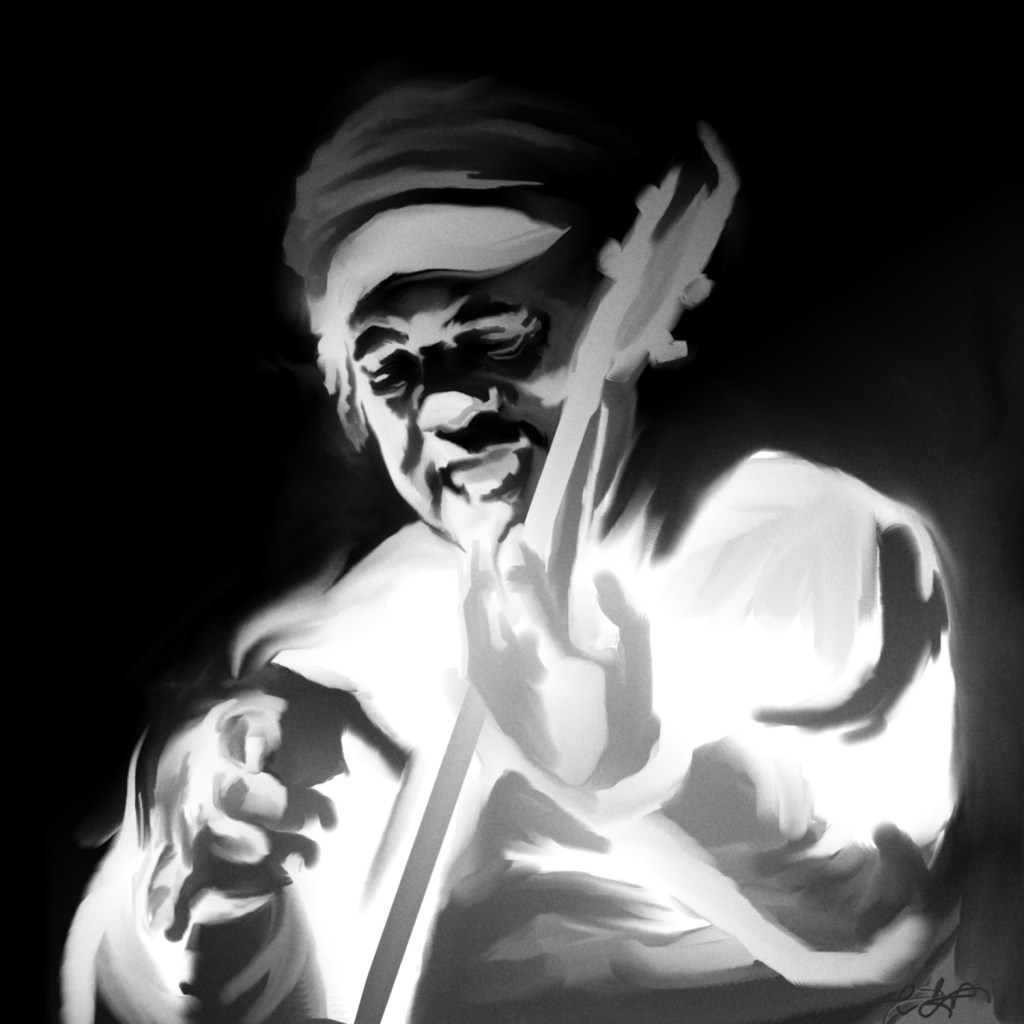 I was trying to paint Victor Wooten. I’ve recently picked up the bass guitar, so I’ve been watching some of his videos and listening to some of his music and getting inspired.