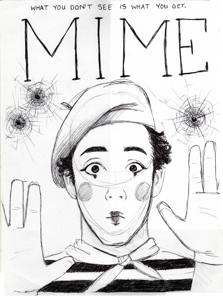 Aaand this is what happens when you get a bunch of writers together over the weekend, and you’re sitting around the table discussing mimes, for some reason… and someone says, “Hey, what if there was a superhero mime? Like, a character who could mime things into being?”